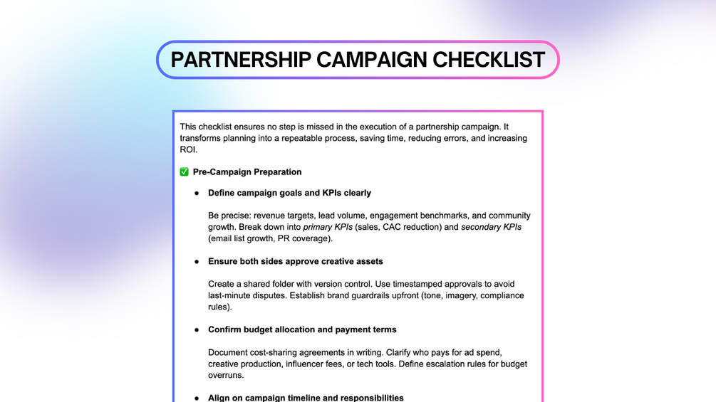 - Partnership Campaign Checklist – Plan and execute joint campaigns without missing a key step.